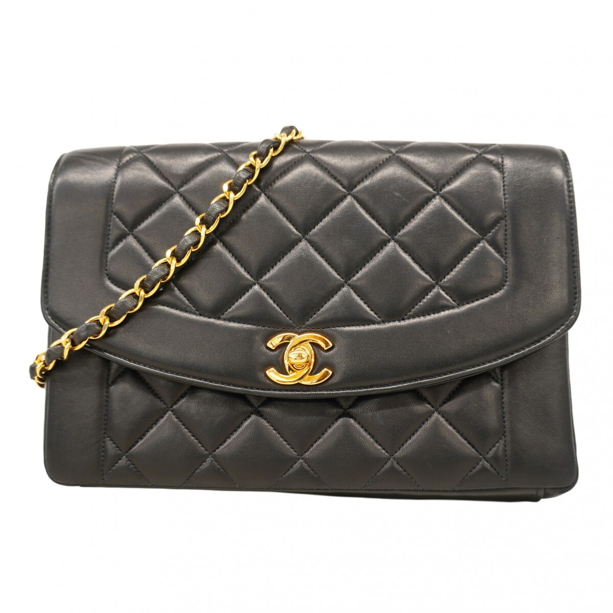 - 【5me5802-h】シャネル ショルダーバッグ ダイアナ チェーンショルダー ラムスキン ブラック ゴールド金具【中古】レディース