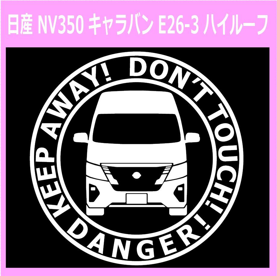 - T〇)NISSAN_NV350_CARAVAN_キャラバン_E26-3_標準ボディ_high_ハイルーフ_front DANGER 正面 カッティングステッカー シール セキュリティ