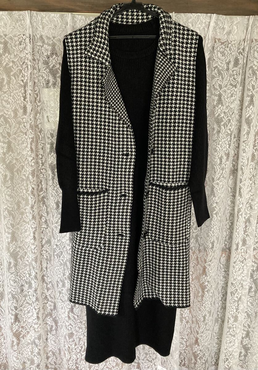 - ニットロングベスト&ワンピース 2点セット 黒系 M〜Lサイズ