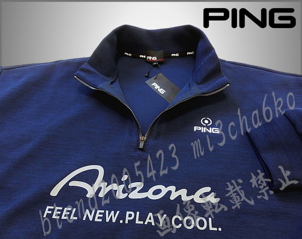 - ■新品【PING GOLF】ピン ゴルフ 全方向ストレッチ ピンカリハイゲージ ハーフZIP ハイネック 長袖シャツ■NV/LL(XL)