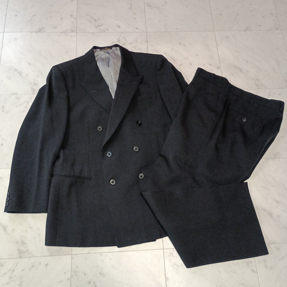 - 72 HUNTSMAN ハンツマン スーツ セットアップ ダブル ジャケット オフィス 紳士 100AE5 ブラック 51101K