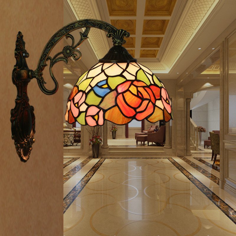 - 独特★芸術品★ウォールライト花柄 照明 ステンドランプ ステンドグラス アンティーク レトロな雰囲気 ティファニー 室内装飾