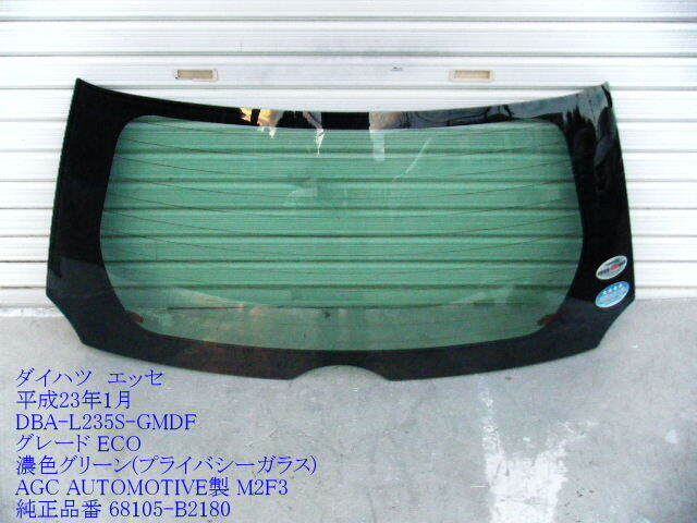 - ◆L235S ダイハツ エッセ バックドアガラス リアゲート リアガラス ウインドウガラス プライバシー(濃色緑) M2F3 68105-B2180 [14272]
