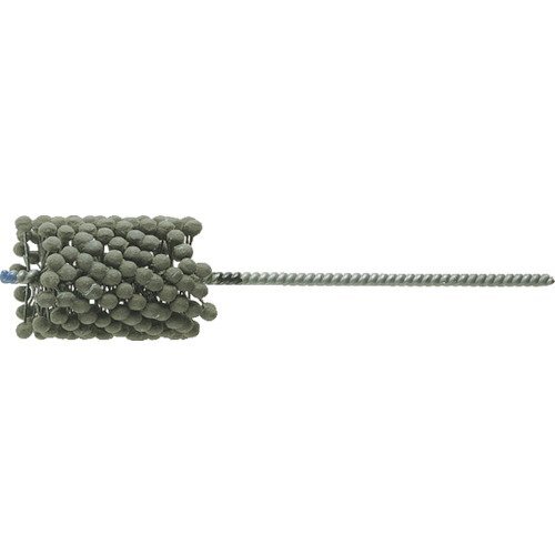 シャフトから出ているファイバー樹脂製の足に人口砥粒を焼結させた玉をつけた構造です。足がナイロン樹脂で弾力性に富み、ワークの内面のバリ、凹凸のあるワークの内面も研磨可能です。SC(シリコンカーバイト)ワークの材質が比較的硬いもの(鋳鉄、炭素鋼、焼き入れした鉄など)AO(酸化アルミナ)ワークの材質が比較的柔らかいもの(アルミニウム、ステンレス、銅など)#60、120、180、主にバリ取り用#240、320、600、主に研磨用#1000相当(鏡面仕上用)(#20、#40、#80、#400、#800、は特注品として申し受けます)回転数は、ワークによって異なるがおよそ300~1200rpmの間で使用作業時間はワークの材質および使用目的によって異なるが目安として10~20秒、往復運動は目安として2秒に1往復位●研削液は、水溶液(ソリューブタイプ)またはスピンドル油を使用●砥粒:シリコンカーバイド●シャフト:亜鉛メッキ線●ブラシ部:ナイロン