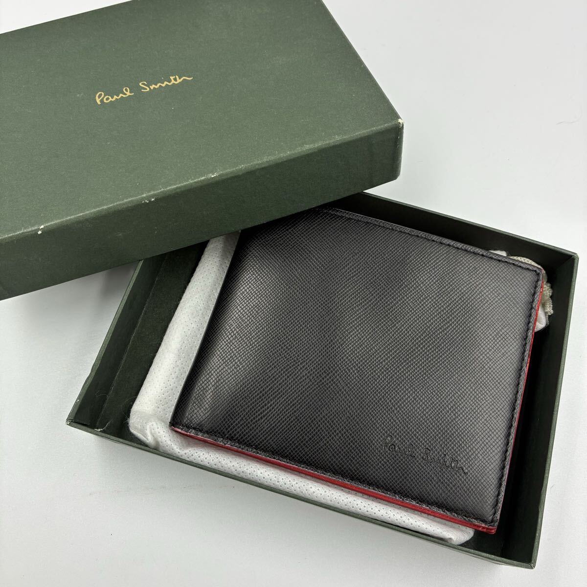 - 1円■極希少■ポールスミス 二つ折り財布 サフィアーノレザー ヴィンテージ 90s ブラック レッド Paul Smith