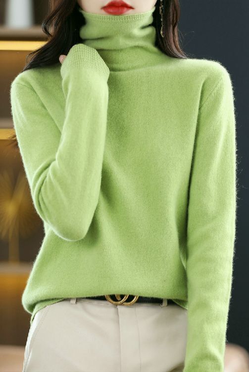 - M ふっくら暖かカシミヤ100%★柔らかタートルネックニット♪アップルグリーンM