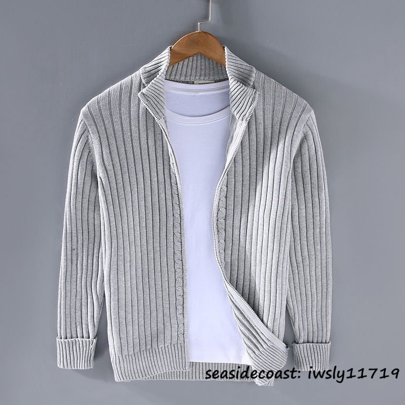 > 秋冬新作*ニット セーター メンズ 厚手 ニットジャケット トップス 長袖 アウター プルオーバー ハーフジップ コットン ライトグレー 2XL