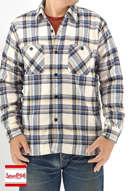 - ツイルチェックワーク長袖シャツ◆SUGER CANE オフホワイト XLサイズ SC29565 シュガーケーン 日本製 ネルシャツ