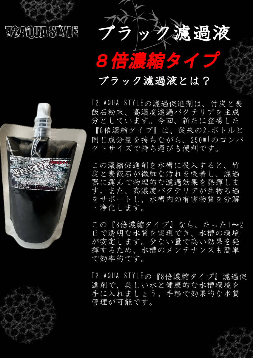 - ブラック濾過液8倍濃縮タイプ★T2 AQUA STYLE☆ピカピカな水をすぐ出来る。内容量250ml×3従来品6L相当