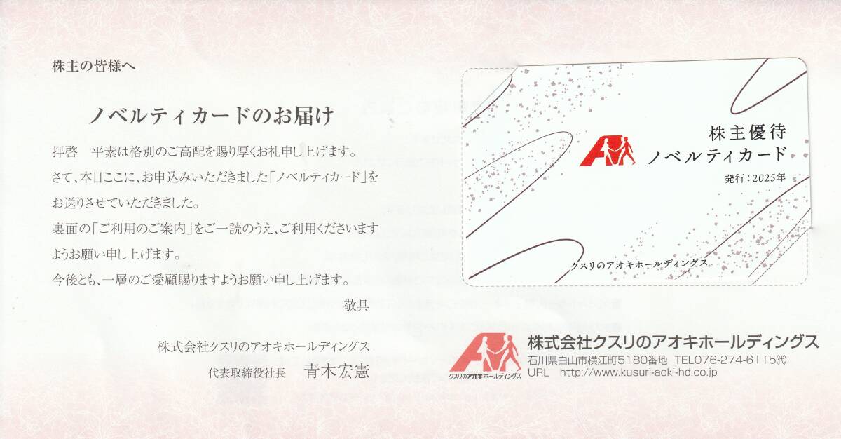 - 【NEW】クスリのアオキ 株主優待ノベルティカード 5,000円 有効期限なし
