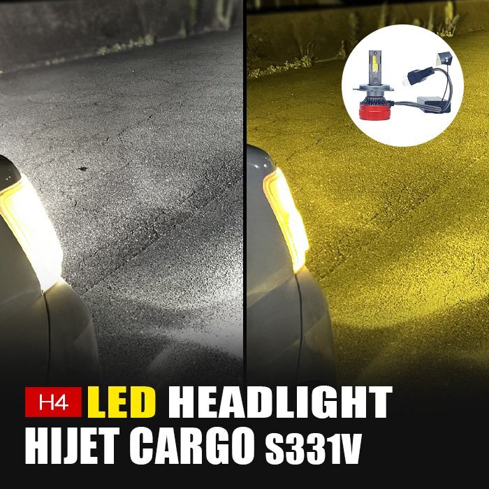 - ハイゼット カーゴ S331V LED ヘッドライト H4 ロービーム 3000K 8000K カメレオン 色温度調整 アプリ 連動 高輝度 イエロー ホワイト 左右