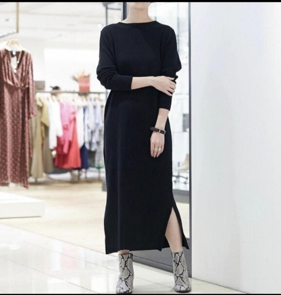 - 定価30800円*TOMORROWLAND*カシミアニットワンピ*ネイビー