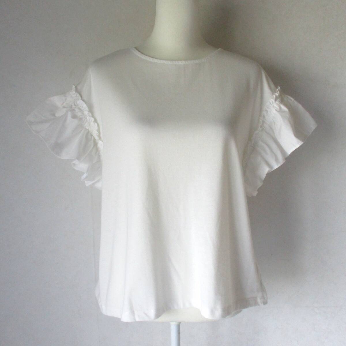 > ☆使用品☆chocol raffine robe ショコラフィネローブ☆フリルスリーブTシャツ size L オフホワイト【圧縮発送】