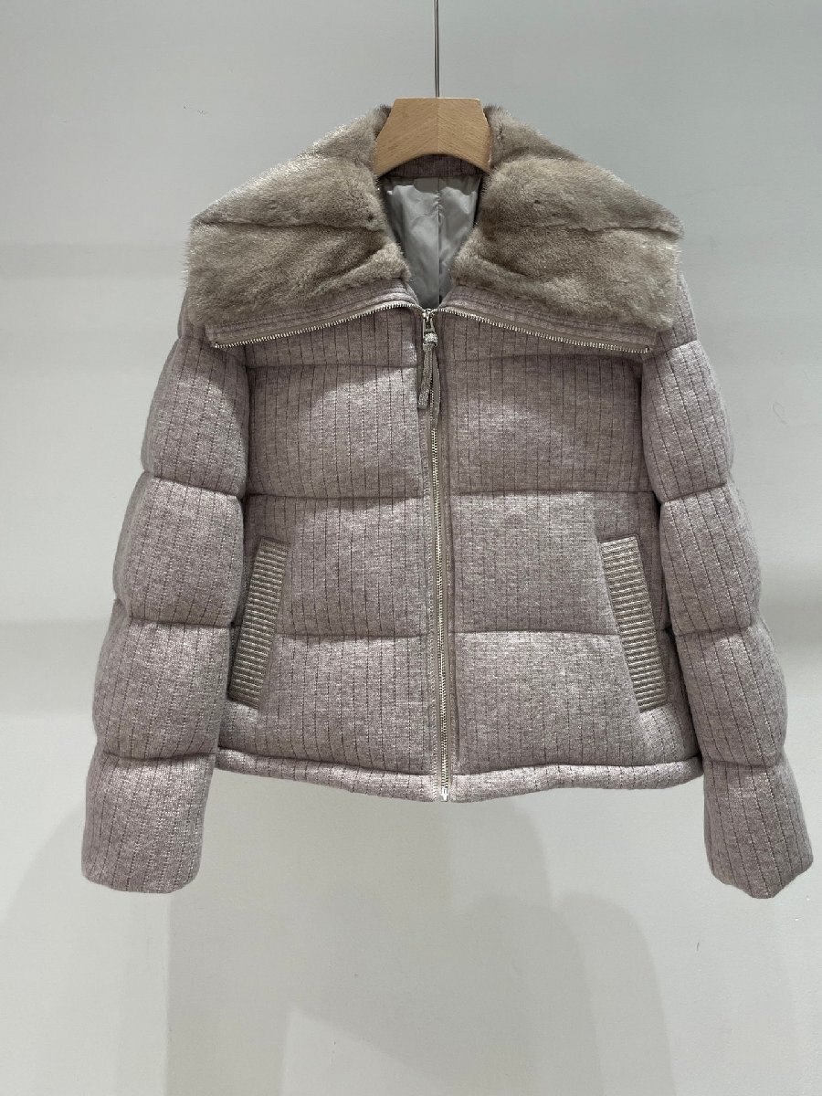 > グレーL★送料無料★ブルネロクチネリ★レディース ラグジュアリーダウンコート, ミンクファー襟付き, 90%グースダウン, ニットウ