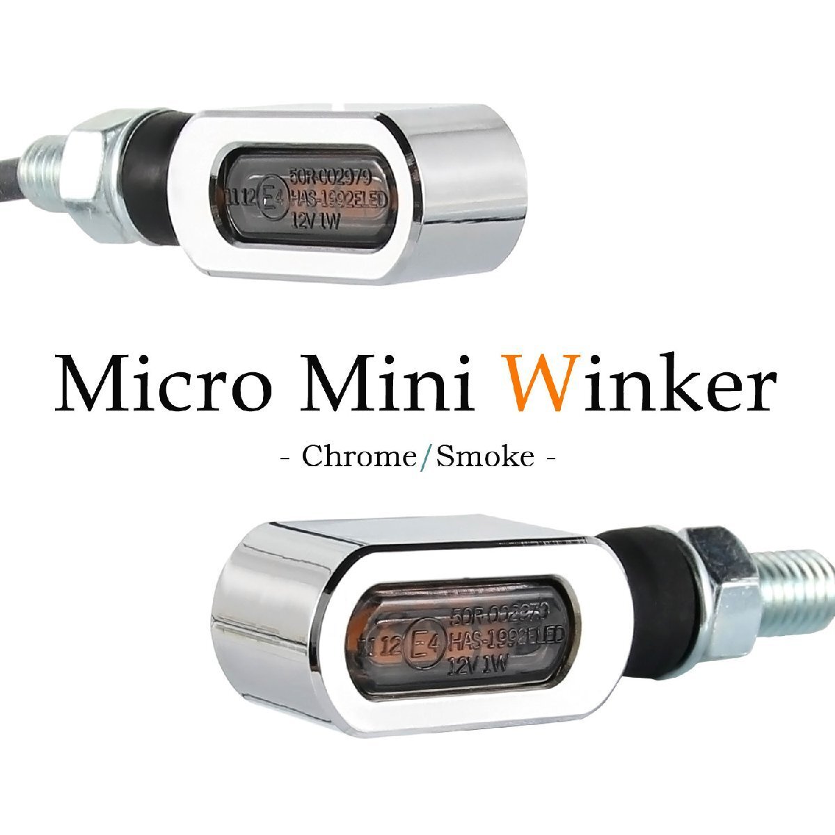 > マイクロミニウインカー LED 車検対応 クローム メッキ スモーク レンズ シングル 12V 汎用 アルミ製 左右セット バイク カスタム パーツ