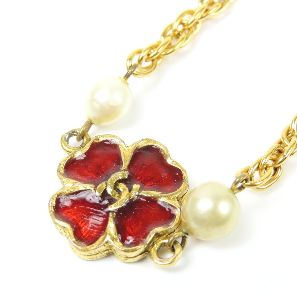 - 203588★1円スタート★CHANEL シャネル 美品 ココマーク クローバー パール調 アクセサリー ヴィンテージ ネックレス ゴールド