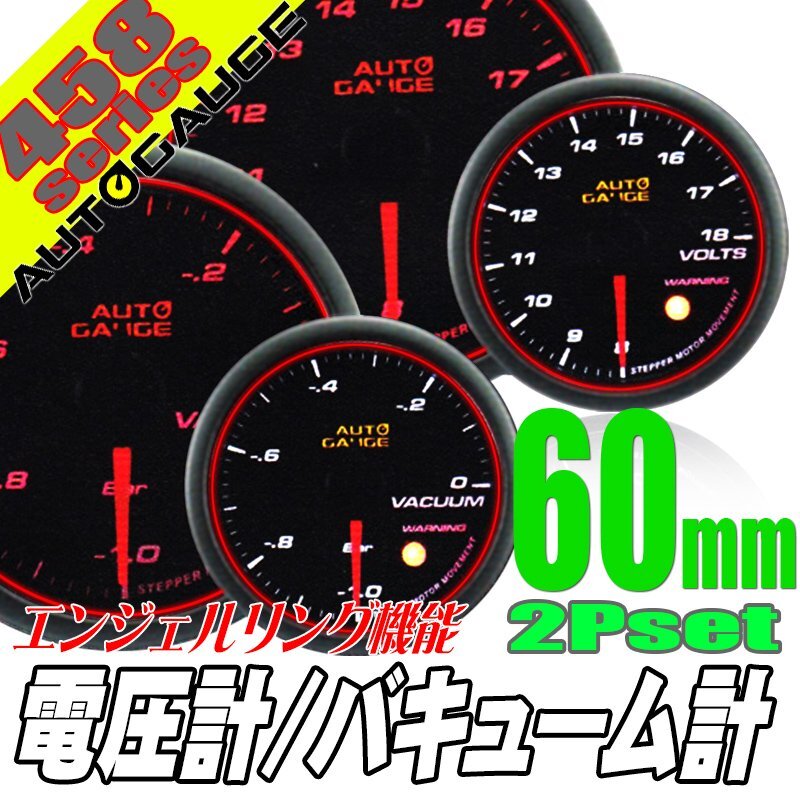 > オートゲージ バキューム計 電圧計 60Φ 2連メーター 458 2点セット 日本製モーター エンジェルリング ワーニング 60mm