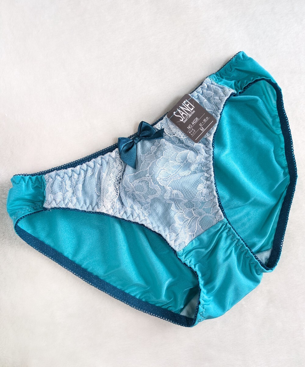 - お泊まりに☆キュートなパンティ未使用M☆フロントレース☆鮮やかブルーグリーン☆☆☆匿名配送可☆タグあり☆