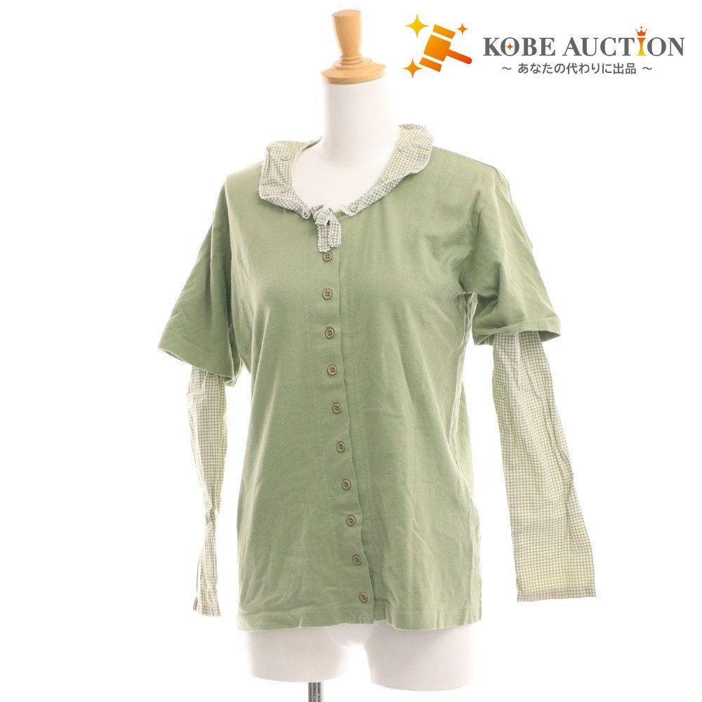 > ■ カネコイサオ カーディガン カットソー 長袖 トップス チェック 袖切り替え レディース グリーン