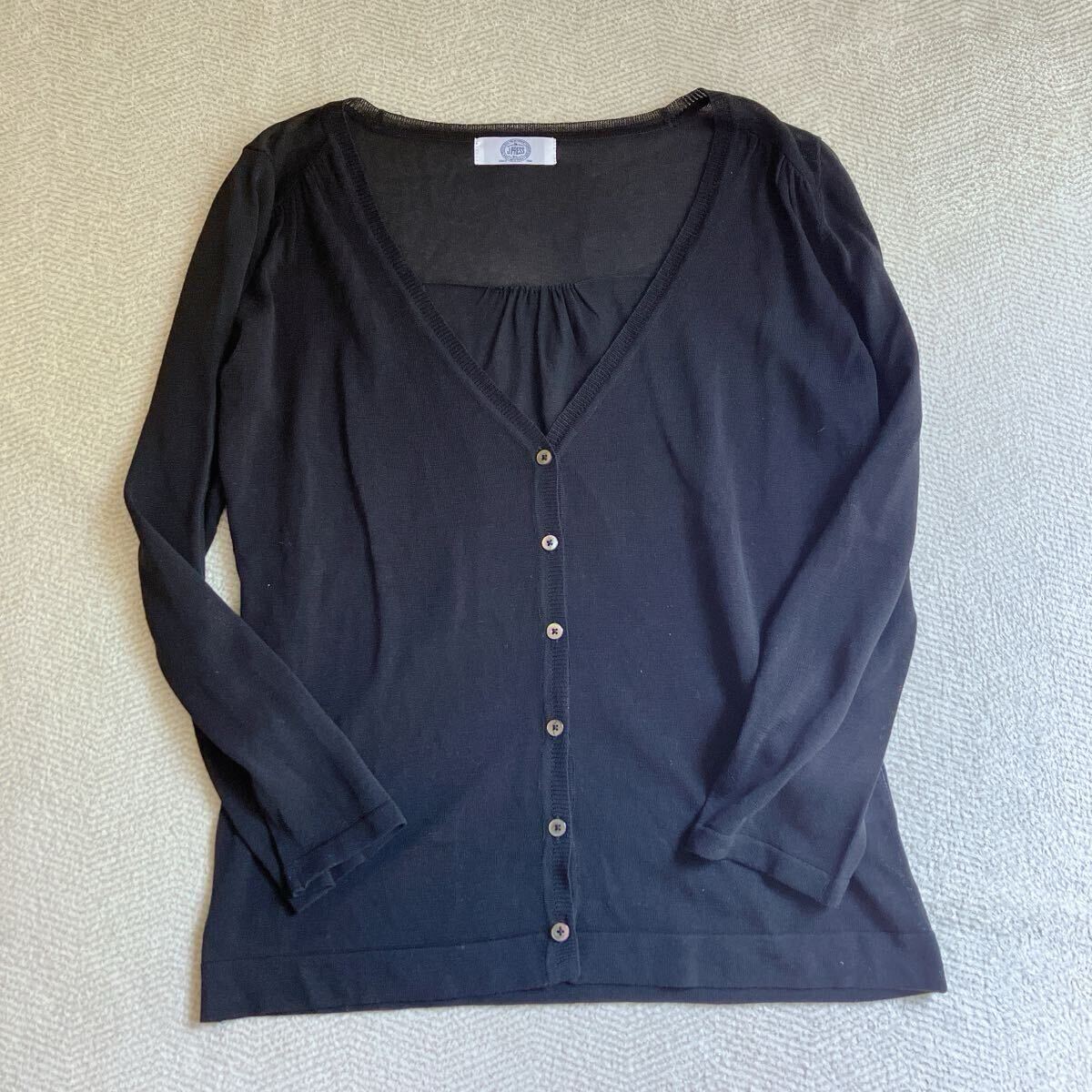- 100円スタート J.PRESS ジェイプレス シアー 薄手 カーディガン 黒 コットン アクリル シースルー L オフィスカジュアル