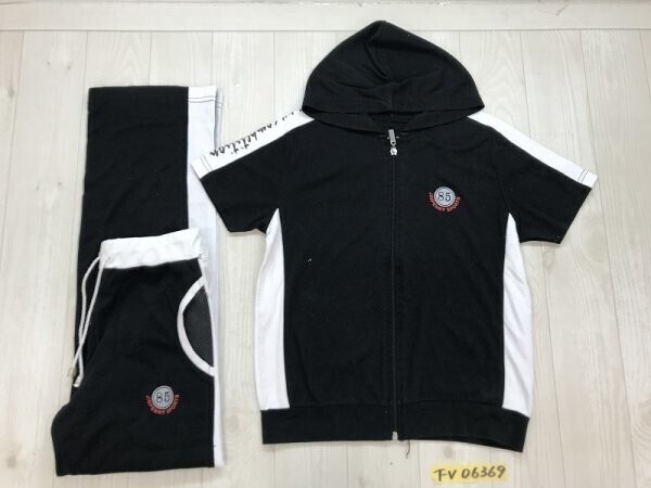 - JINPENNY SPORTS レディース 綿 薄手 半袖パーカー・パンツ 上下セットアップ 黒白