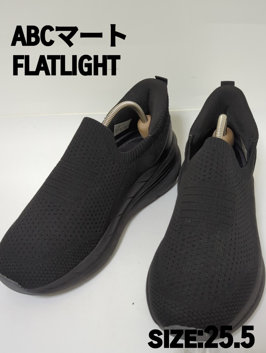 > 未使用品級 ABCマート FLATLIGHT スニーカー 黒 25.5 スリップ スリッポン 衝撃プライス 黒 ブラック FIT 靴 メンズ