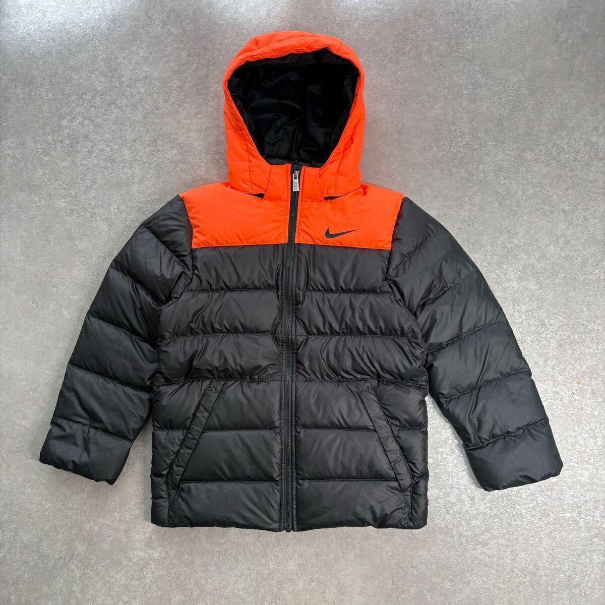 - NIKE ナイキ レディース ダウンジャケット 蛍光カラー オレンジ 短丈 ワンポイントロゴ Mサイズ