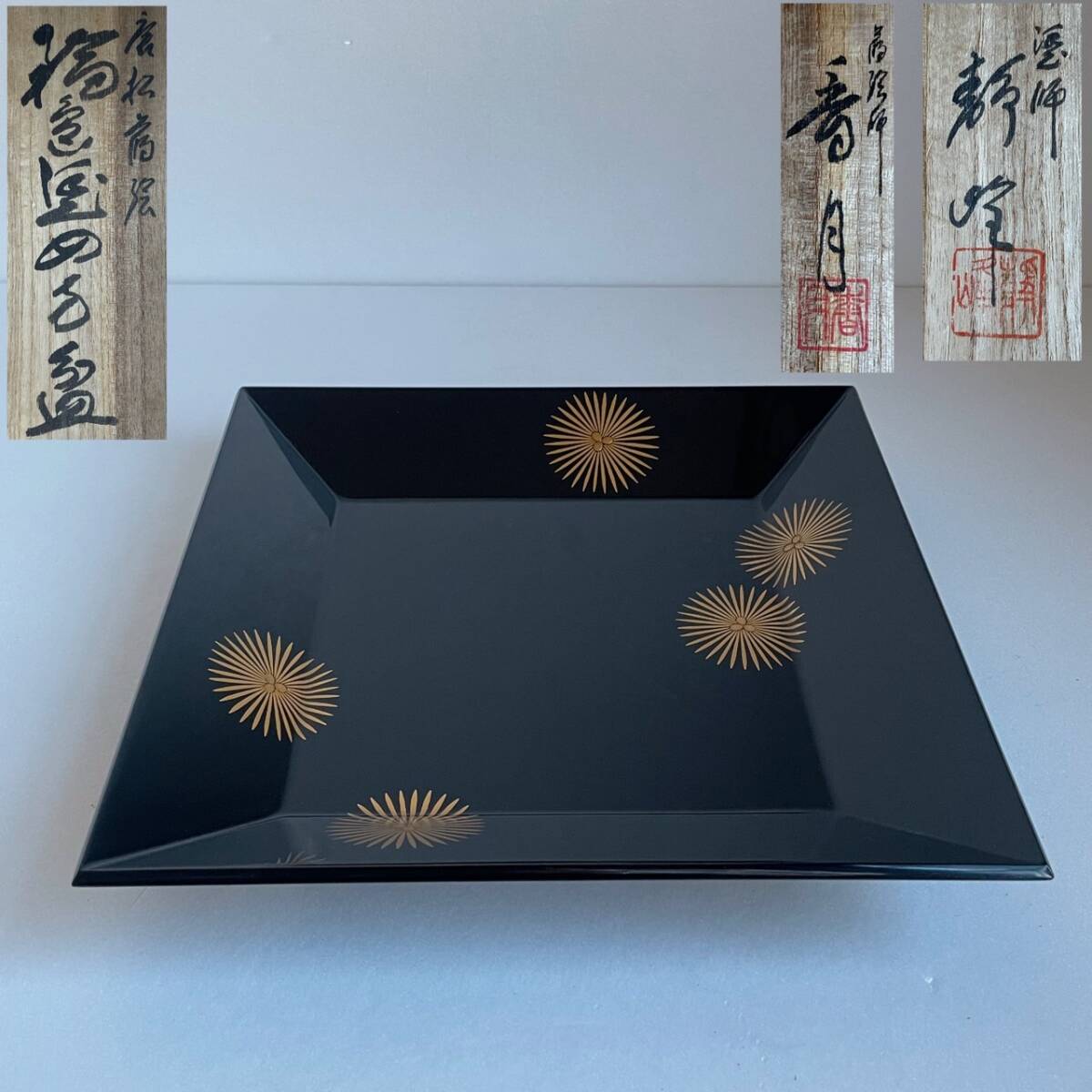 - 【和美】美品 唐松蒔絵 輪島塗 四方盆 共箱 静峰 香月 合作 本物保証 茶道具 30