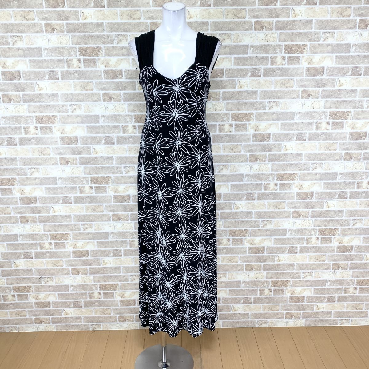 > 1円 ドレス Green Box USA ロングドレス M 黒系柄 パーティードレス カラードレス キャバドレ 発表会 中古15937
