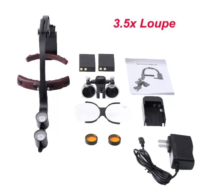 - 歯科ヘッドライト両目拡大鏡2.5 X/3.5 Xヘッドマウント口腔検査ランプ美容外科ヘッドバンド照明