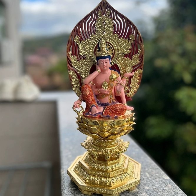 - 仏像【如意輪観音菩薩】 桧木製高級木彫り 極彩色 総高32cm