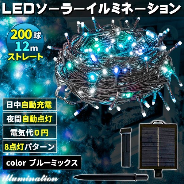 - ソーラー イルミネーション 屋外 クリスマス ストレート 屋外用 イルミネーションライト 200球 Mixブルー
