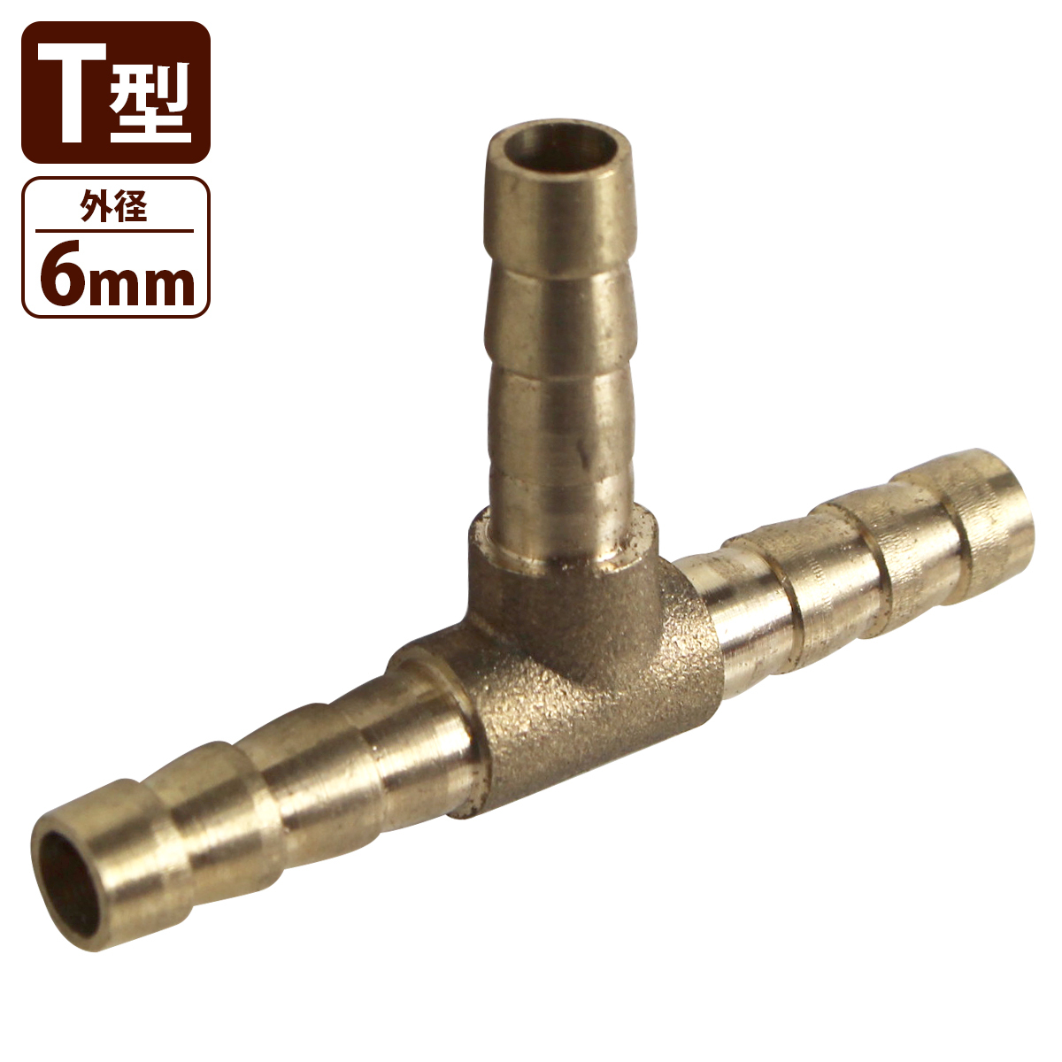 > 【送料220円】真鍮 T型 三又 Tジョイント 外径 6mm/6mm/6mm 3WAY パイプ 三つ又 T字 エアー ガソリン 燃料 水 ホース コネクター 継手