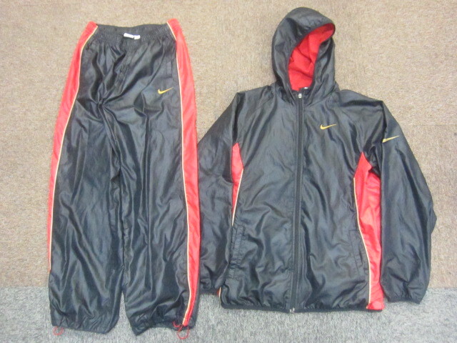 > ナイキ スウォッシュロゴ刺繍ウインドブレーカー上下セットアップ メンズM 黒 裏地付きナイロンジャージ トラックジャケット パンツ11019