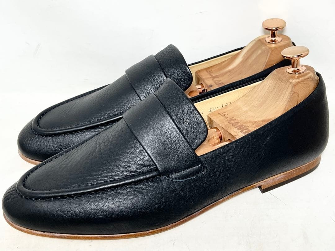 > 即決★美品 日本製 VARISISTA★42=約27cm レザースリッポン ヴァリジスタ 黒 ブラック ローファー シューズ 本革 革靴
