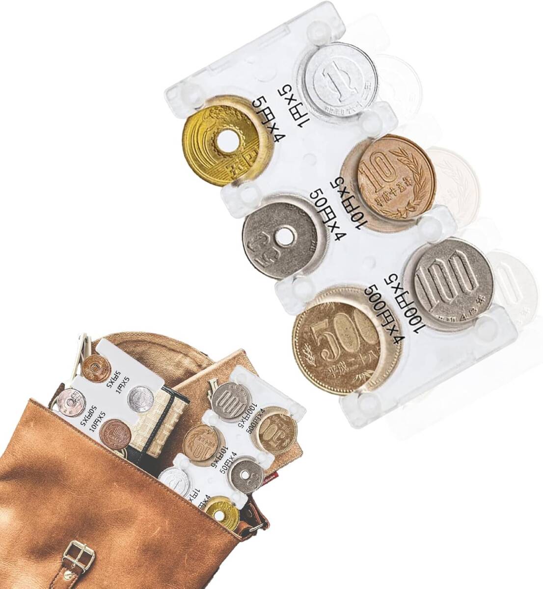 - 携帯用コインホルダー 小型携帯用カセット 揺れても落ちない小銭入れを片手に取り出すクイック 透明袋付き(色:ホワイト)