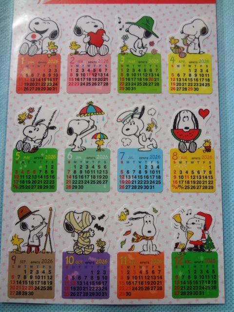 - 2026年 スヌーピー シールカレンダー 貼ってはがせる 2種類出品中 385円 送110