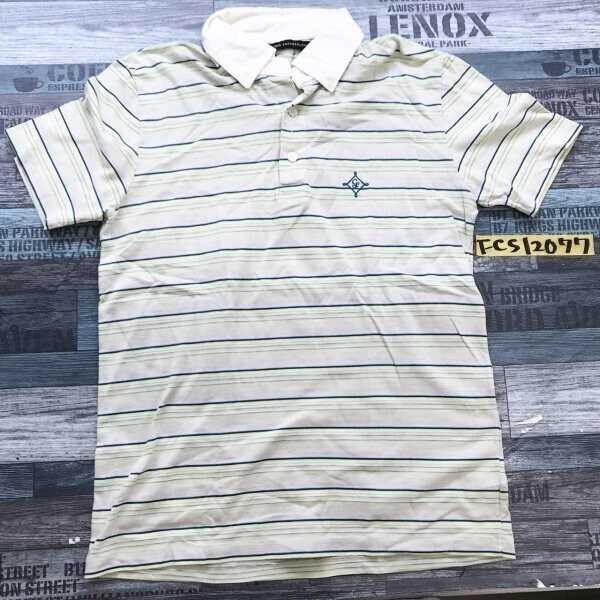 - nano universe ナノユニバース メンズ 日本製 ボーダー 半袖ポロシャツ M 緑他