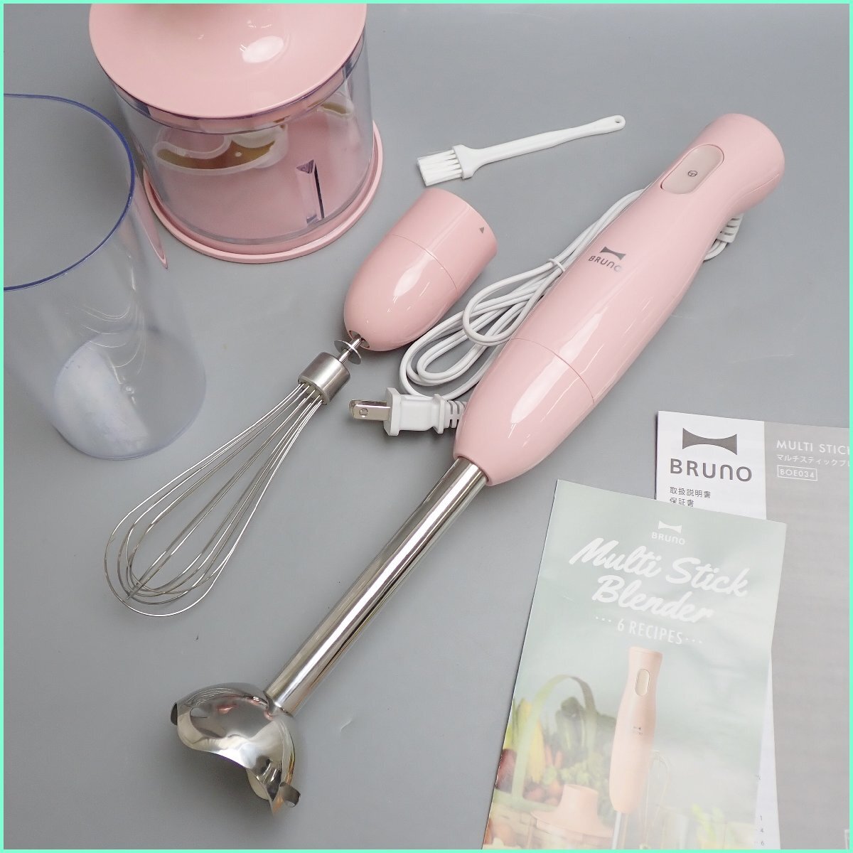 > ★BRUNO/ブルーノ マルチスティックブレンダー BOE034/ピンク/容量500ml/動作品/アタッチメント3種・取説付き&0128700134