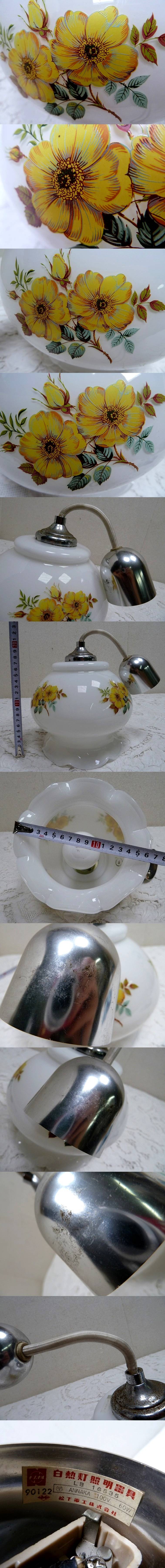 > (☆BM)昭和レトロ National/ナショナル LK1838 松下電工 ペンダントライト シーリングライト 天井照明 ガラス 黄色い花柄 アンティーク
