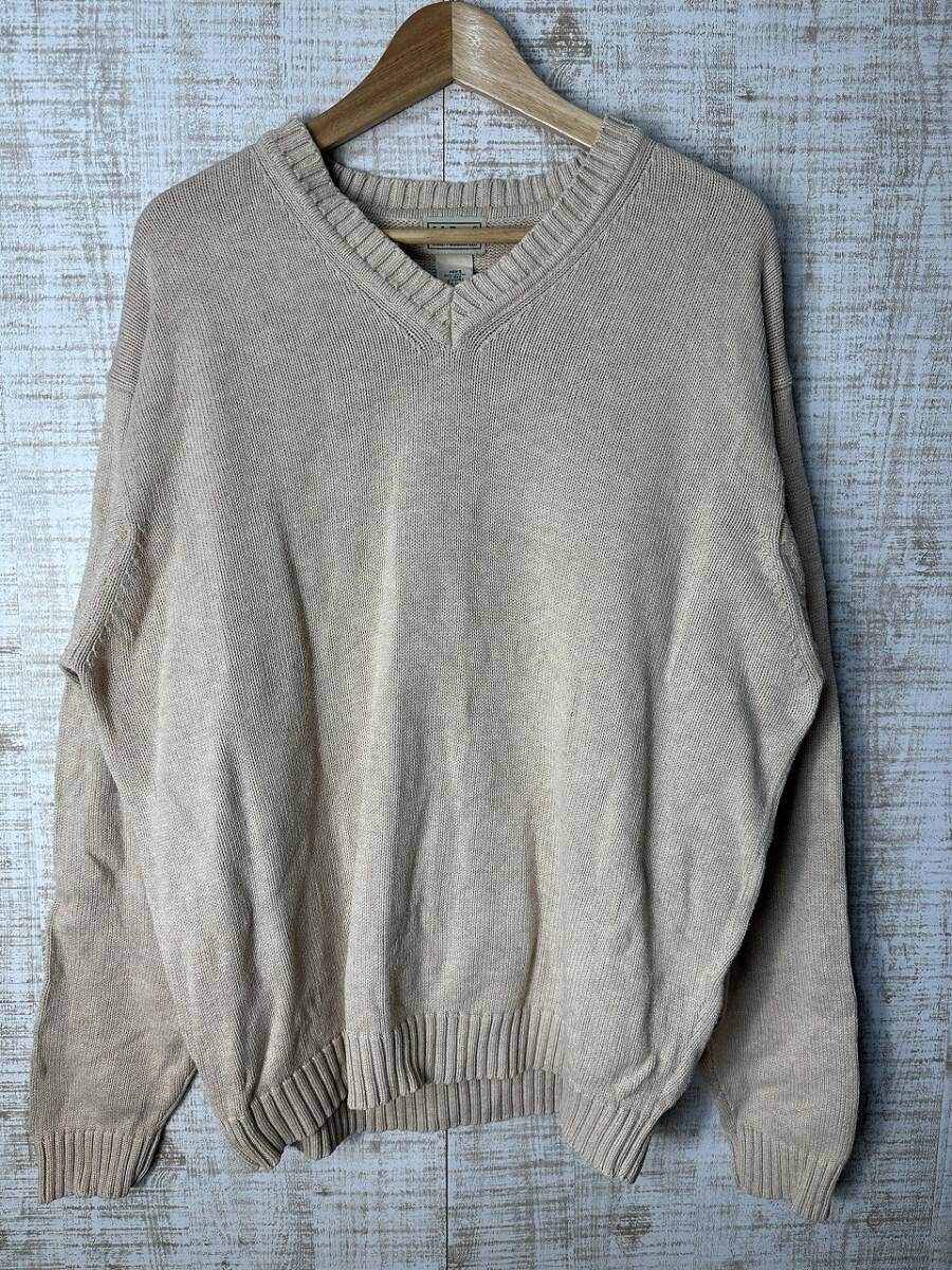 > ☆US古着 L.L.Bean エルエルビーン 90s 90年代 ニット コットン Vネック ミドルゲージ ベージュカーキ茶系【L】 ◆5353◆ ◆5333◆