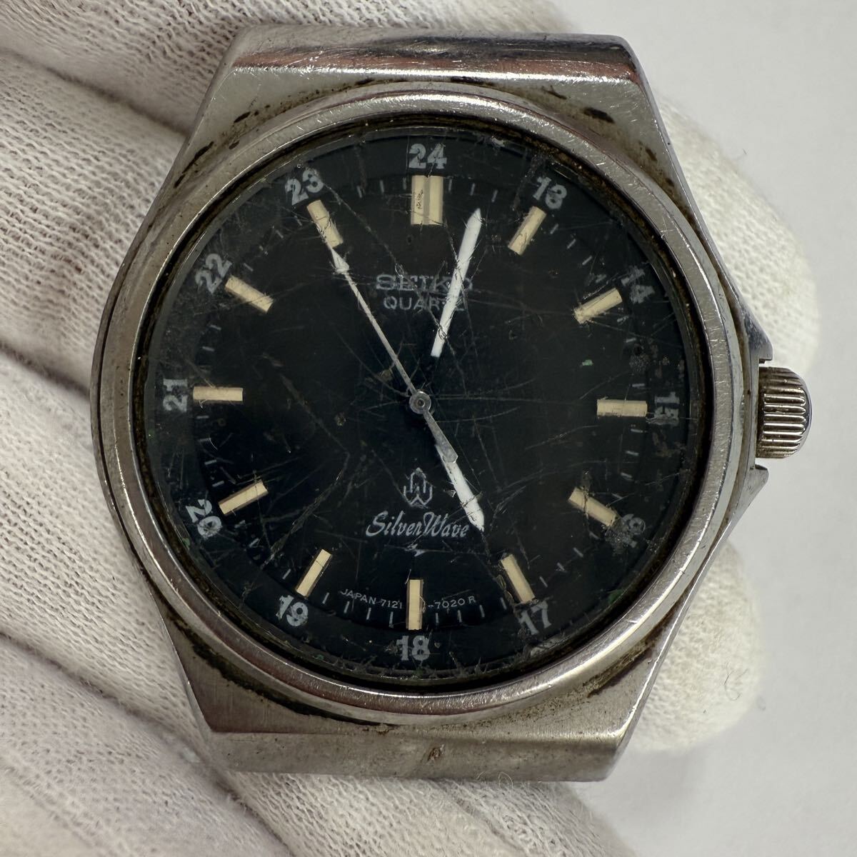 - ▽1円〜 SEIKO silver wave セイコー シルバーウェーブ 腕時計 ケースのみ 7121-7020 黒文字盤 クォーツ 現状不動品 ジャンク KB2520