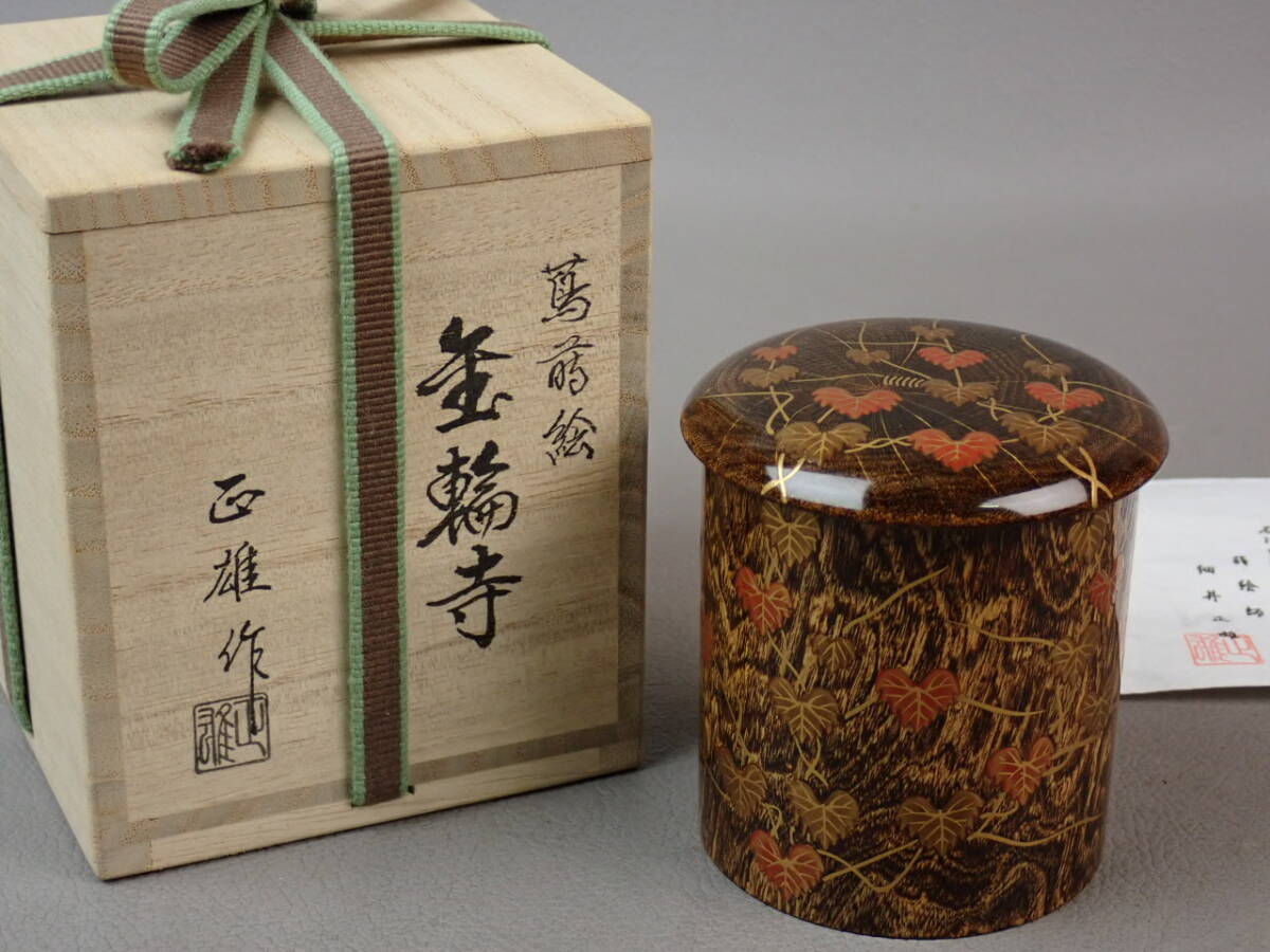 - 【骨董・茶道具】★輪島塗 蒔絵氏師 細井正雄★★蔦蒔絵金輪寺 gq066tl 棗 茶器