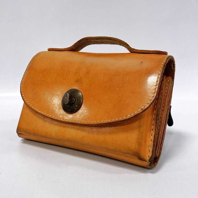 - ハンドメイド/ハンドル付き/ターンロック/レザーウォレットポシェット/カード・小銭入れ/ミニバッグ/ユニセックス