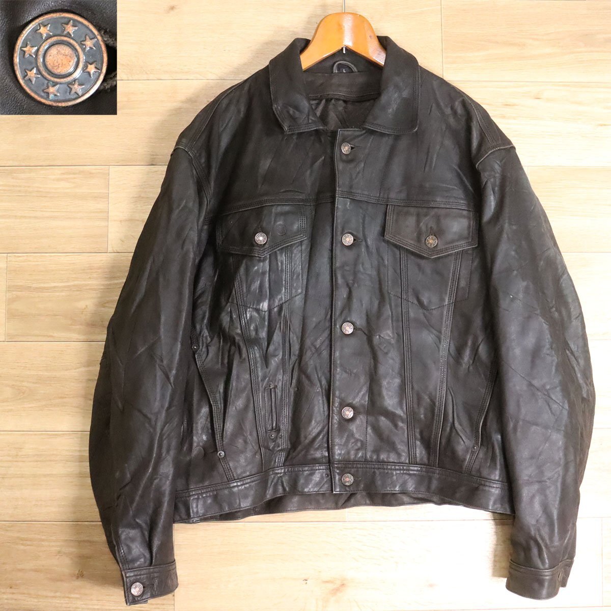 > G3O/Y5.13-1 レザージャケット 本革 革ジャン 皮ジャン トラッカージャケット ジージャンタイプ メンズ L ブラック系