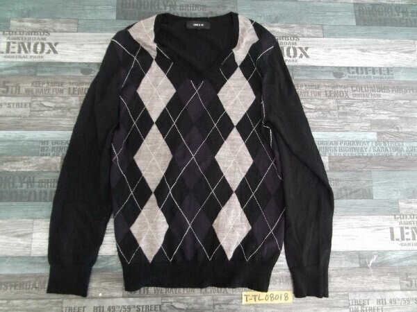 - COMME CA ISM コムサイズ メンズ アーガイル Vネック ニットソー L 黒