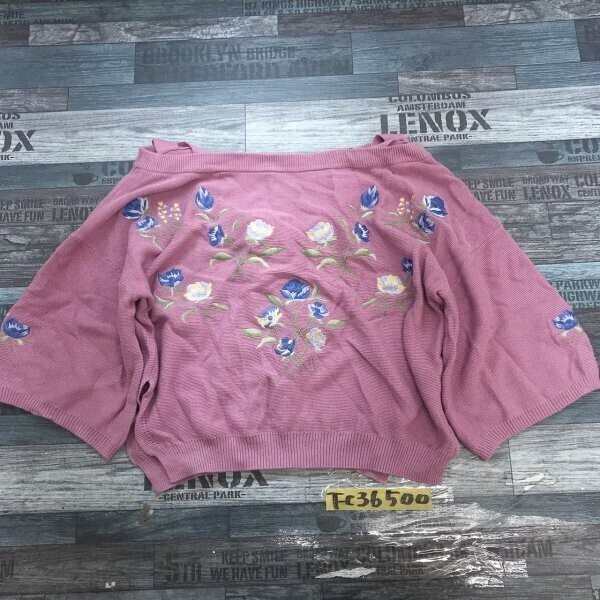 - タグ付き新品!W CLOSET ダブルクローゼット レディース 綿100% 花刺繍 五分袖 ショート丈ニットソー F ピンク