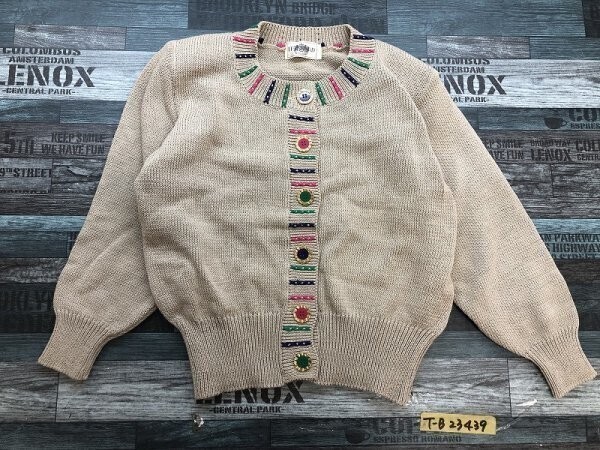 - ITARIYARD レディース カラフルボタン ニットカーディガン 綿 日本製 肩パッド ベージュ