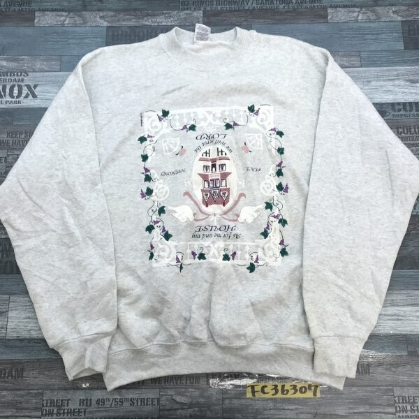 - FRUIT OF THE LOOM フルーツオブザルーム レディース コットン混 裏起毛 プリント トレーナー L グレー