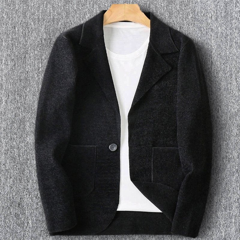 > 新品 贅沢感 ウール混 ニット ジャケット メンズ 春秋 厚手 セーター 秋冬 暖かさ 細身 柔らかい カーディガン 1つボタン 黒 T6013-2XL